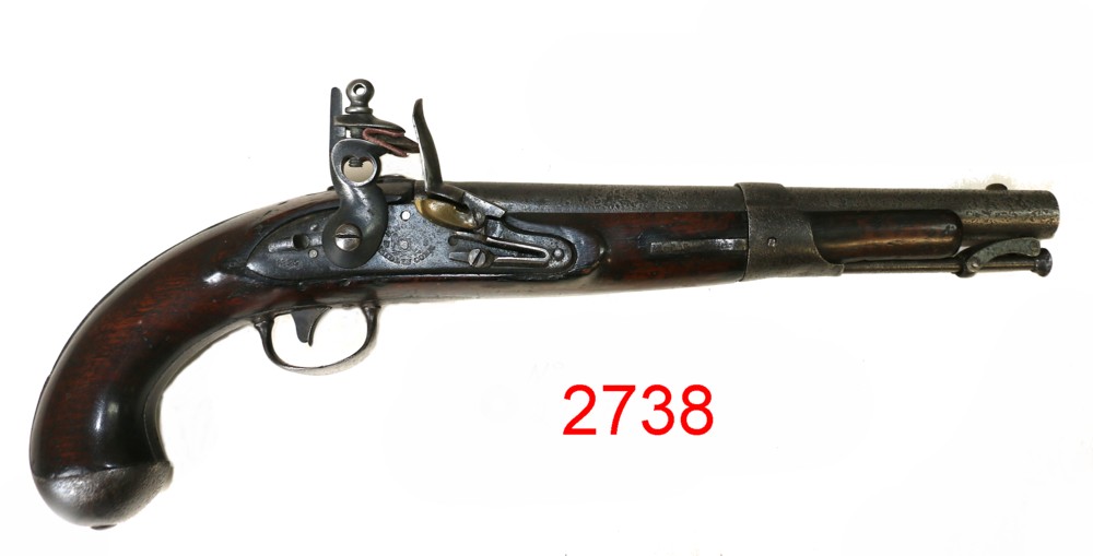 (2731)- French Model 1733/66 Flintlock Pistol, cal. .69, Manufactured by Libreville Arsenal (Charlesville) during the French Fevolution, VG cond., $ 2,500.00 Can Firearms sold only to Canadian Buyers.